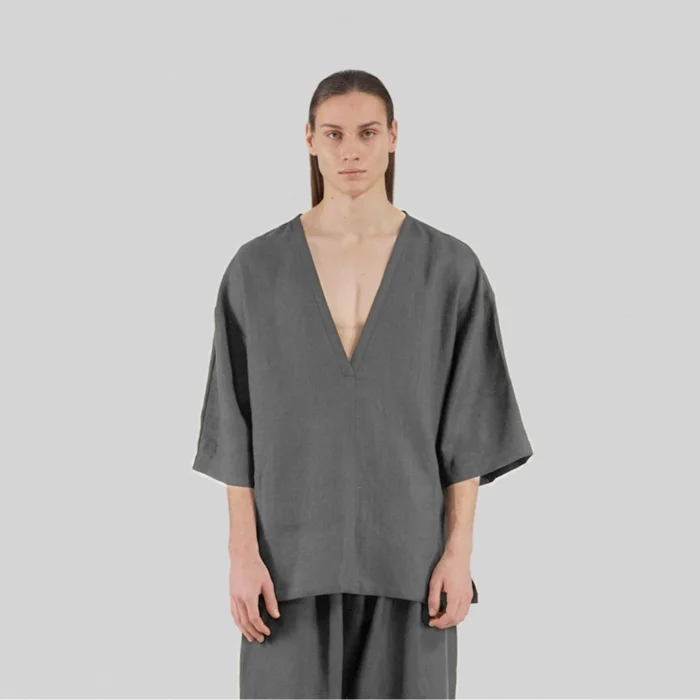 Product: 100% Linen Deep V-neck Oversized T-shirt