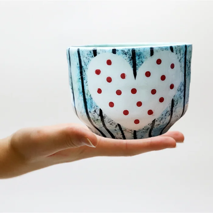 Product: Dots And Heart Ceramic Cup