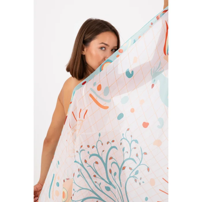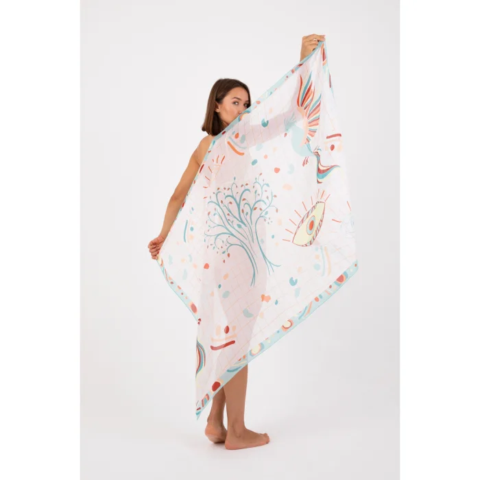 Our product, which is designed as a pareo due to the feature of the fabric, can also be used as a shoulder shawl if desired.