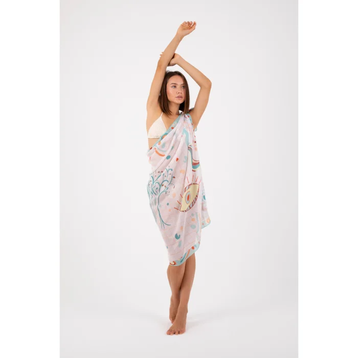 Our pattern on the pareo was specially drawn by hand and digitally by our designer and transferred to the fabric.
