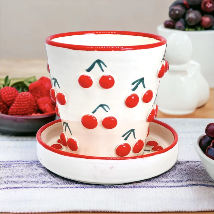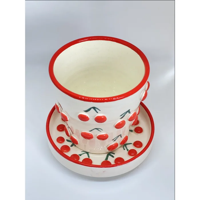 It is handmade. It has no handle. It has a plate. It is as in the picture.