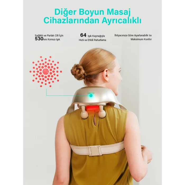 Dual Action Warm Compress with Heating Function – Thanks to its large heating surface and infrared light support, it offers a widespread feeling of warmth in the neck and shoulder area. It enhances comfort in cold weather, making your massage experience more enjoyable.