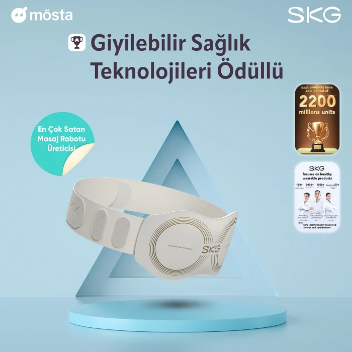 SKG W7 PRO TENS-EMS Back and Waist Massager, Special Heat Therapy-Thermotherapy, TENS EMS Frequency Therapy Supported, Skin-Friendly Fabric, Hot Compress, Stylish and Lightweight Design Massage Robot The SKG W7 PRO TENS-EMS Back and Waist Massager is a superior massager designed to relieve the stress and pain of modern life. Supported by TENS and EMS frequency therapy, this massager effectively reduces low back and back pain with its special heat therapy and thermotherapy features. Thanks to its stylish and lightweight design, it can be used anywhere, and it offers a comfortable experience with its skin-friendly fabric. Key features: Medium Frequency Massage Technology: By massaging deeply, it provides more effective relaxation than traditional low-frequency massagers. With a pulse frequency of over 1000Hz, it offers 14 times more pulse energy. Large Area Massage with 4 Electrode Pads: It effectively covers the psoas major and quadratus lumborum muscles, relieving pain and swelling from the source. Increases the massage area by 67%. Heat Therapy and Hot Compress: It provides deep relaxation by applying large-area heat to the waist and abdomen. With thermotherapy, it relaxes the muscles and relieves pain. Sleek and Lightweight Design: With its thin and light structure, it is not visible under clothes. It is portable and can be used anywhere. Easy to Use: There is no control box, so it is easy and convenient to use. It is easy to put on and take off, and it does not cause discomfort even when lying down. Smart App Control: It can be easily controlled with the mobile app, different massage modes and settings can be selected. Question and Answer: 1. What is the massage technology of the SKG W7 PRO? The SKG W7 PRO uses mid-frequency massage technology with the support of TENS and EMS frequency therapy. In this way, it provides deep relaxation. 2. Does the massager have heat therapy capability? Yes, it relaxes the muscles and relieves pain by applying a warm compress to the lower back and abdomen with large-area heat therapy. 3. Is the product easy to carry and use? Yes, thanks to its sleek and lightweight design, you can carry the product anywhere and use it easily. 4. How do electrode pads work? Four electrode pads target the psoas major and quadratus lumborum muscles, relieving pain from the source and increasing the massage area by 67%. 5. Can it be controlled via mobile app? Yes, the SKG W7 PRO can be easily controlled via the mobile app. You can choose different massage modes and settings. 6. Is the product visible under clothes? No, thanks to its slim and light design, it is invisible and comfortable to wear under clothes. 7. Up to what degree does heat therapy go? Heat therapy can reach up to 42°C, providing effective relief. 8. Is the product skin-friendly? Yes, SKG W7 PRO offers a comfortable use with its skin-friendly fabric. 9. What massage techniques does it involve? The product offers 11 different massage techniques, providing a personalized experience. 10. Is the product certified? Yes, SKG W7 PRO has international awards and certificates, it can be used with confidence. Technical Specifications: Dimensions: 150mm x 80mm x 20mm Weight: 250g Color: White Heat Therapy: Hot compress up to 42°C Frequency Range: ≥1000Hz pulse frequency Control: Intelligent control via mobile app Massage Techniques: 11 different massage techniques Material: Skin-friendly fabric Power Supply: USB charged Usage Area: Waist and back Warranty: 2 years manufacturer's warranty The SKG W7 PRO TENS-EMS Back and Waist Massager is an ideal solution to cope with intense work tempo and daily stress. With mid-frequency massage technology, heat therapy, and smart control features, this product promotes relaxation and a pain-free life.