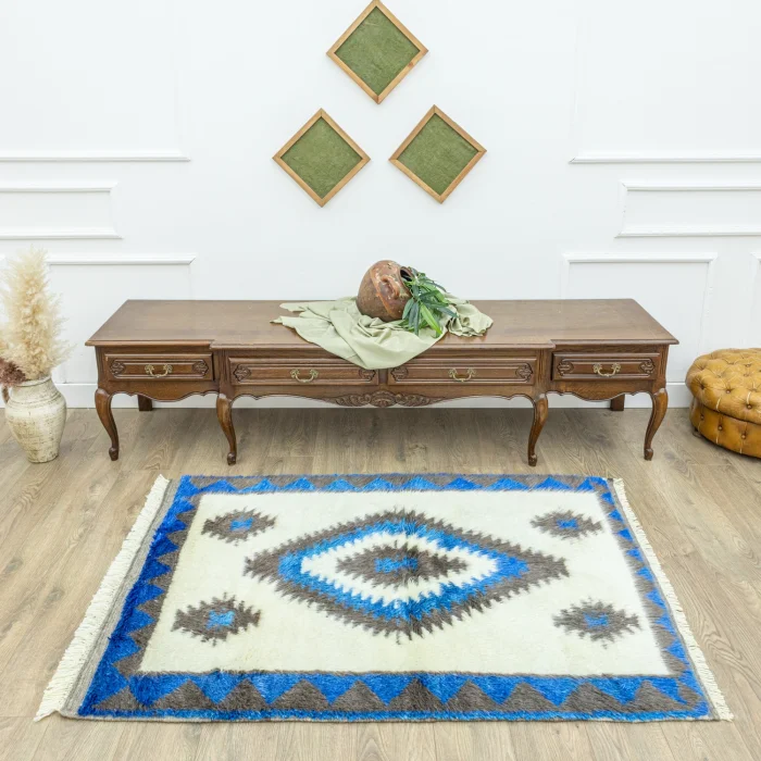 Midelt Geometric Designed Mohair Rug 114x167 Cm