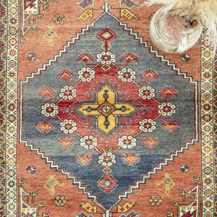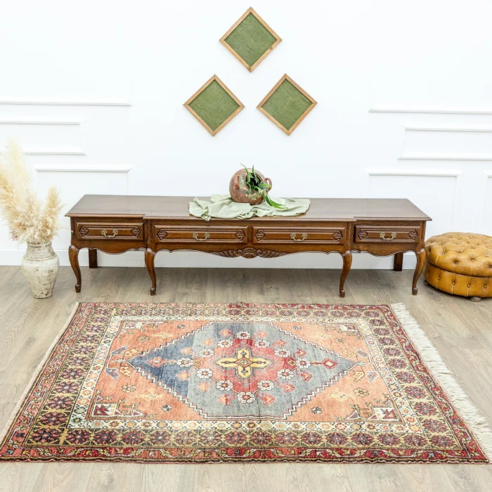 Soho Antiq hand-woven carpets and rugs are designed to breathe into your living spaces. This exquisite hand-woven rug is created by expertly combining carefully selected high-quality wool yarns. Produced using traditional handloom techniques, the carpet is specially designed to add warmth and elegance to your home. The color palette is inspired by the soft tones of nature, and while pastel red and blue tones attract attention with the harmony of their colors, they achieve harmony with other colors in the carpet. The carpet was carefully woven by experienced handicraftsmen and produced in the 1970s with traditional techniques unique to the Afyon region, which adds a cultural depth to the carpet. The size of the carpet is measured as 153 x 189 cm, which allows the carpet to easily adapt to different living spaces. The thickness of the carpet is between 1 - 3 cm. Beyond its aesthetic value, this hand-woven rug stands out when it comes to adding authenticity and a traditional feel to your home.