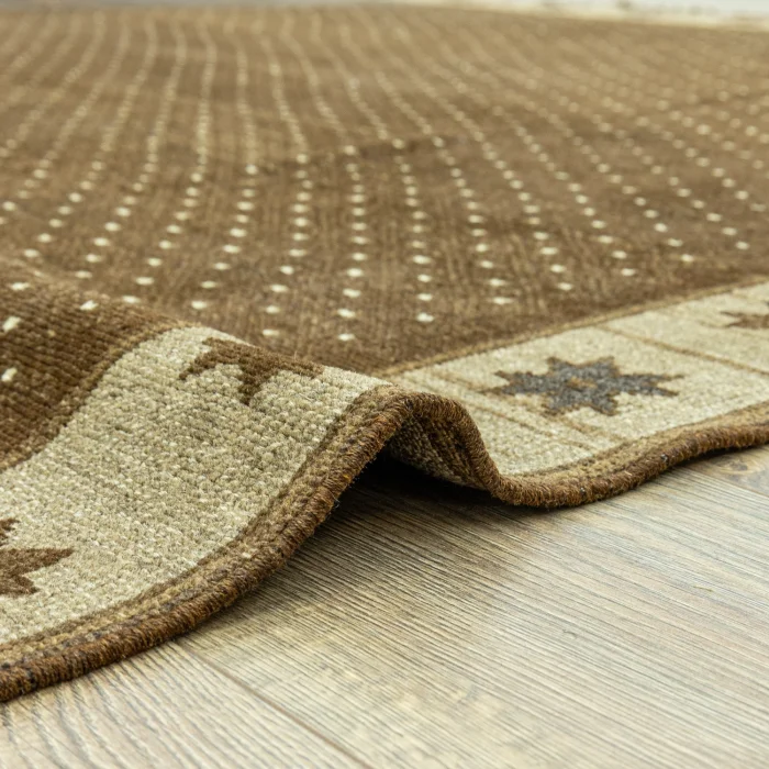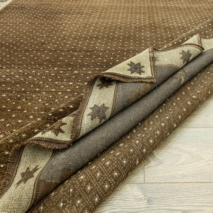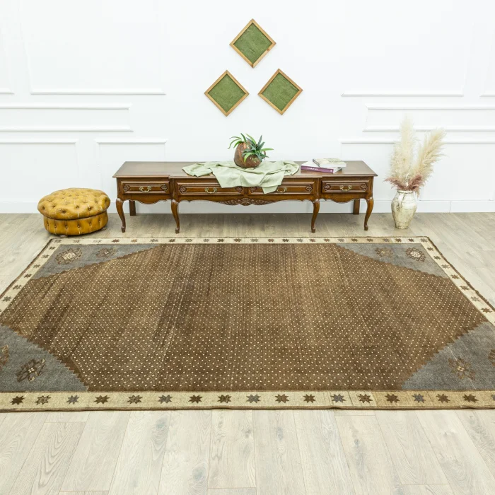 Soho Antiq handwoven carpets and rugs are designed to add a breath of fresh air to your living spaces. This elegant handwoven rug is created by skillfully combining carefully selected high-quality wool yarns. Produced using traditional hand-weaving techniques, the carpet is specially designed to add warmth and elegance to your home. The color palette is inspired by the soft tones of nature, drawing attention with the harmony of brown and beige colors while achieving harmony with other colors in the carpet. The rug was carefully woven by experienced artisans and produced in the 1980s with traditional techniques specific to the Kars region, adding cultural depth to the rug. The size of the rug is measured as 223 x 324 cm, which allows the rug to easily adapt to different living spaces. The thickness of the carpet is between 1 - 3 cm. Beyond its aesthetic value, this handwoven rug excels in adding authenticity and a traditional feel to your home.