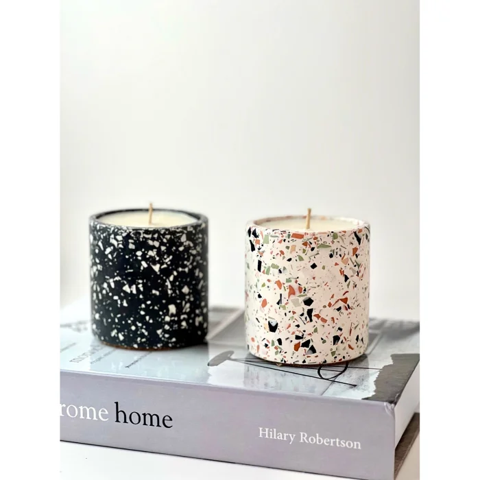 SOLILU candles consist of natural Soy Wax and cotton wick. Candle jars are made from Jesmonite AC100 which is eco-friendly and a water-based composite material. Jesmonite material is safe to use and contains no solvents or VOCs.