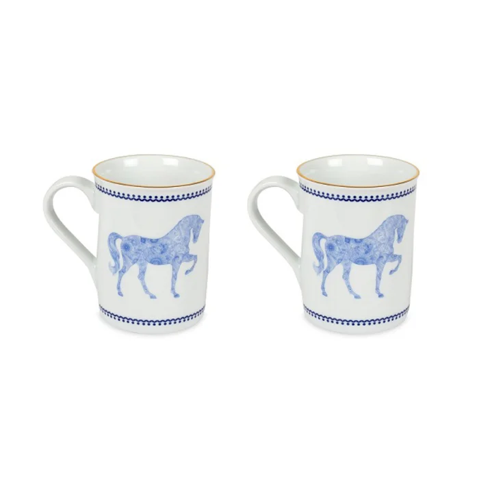 Horse Figured Navy Blue Set Of 2 Mugs