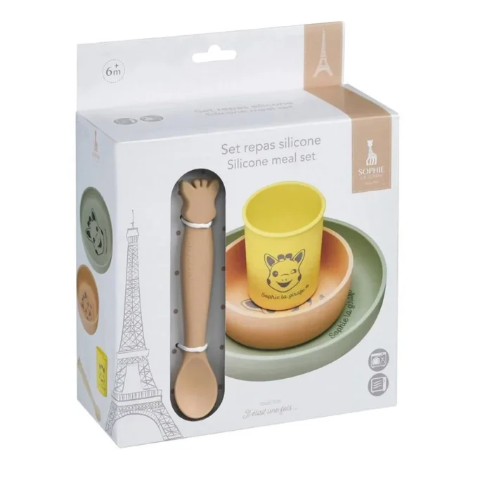 >With the look of Sophie la Girafe, it's a great set for your baby to learn to eat on their own!