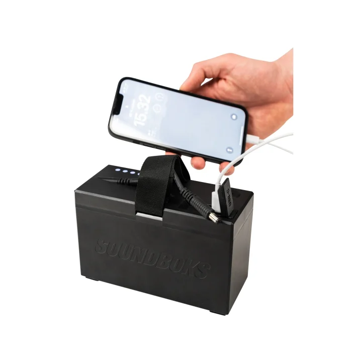 The Battery is a replaceable battery developed for Soundboks speakers. It offers up to 40 hours of usage time at medium volume and can be fully charged in just 2 hours with the official The Charger.