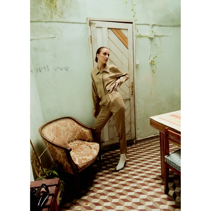 A smart casual piece to transition you from work to after-work activities. Featuring a shirt style collar, mother of pearl buttons and piping details, the Dune Jackets is a unique piece to own. Adjustable hems and functional pockets adds practicality to the viscose-linen jacket. Adjustable hem for flexible use. Shirt collar. Side pockets for compact use. Model is 177 cm tall and wears XS
