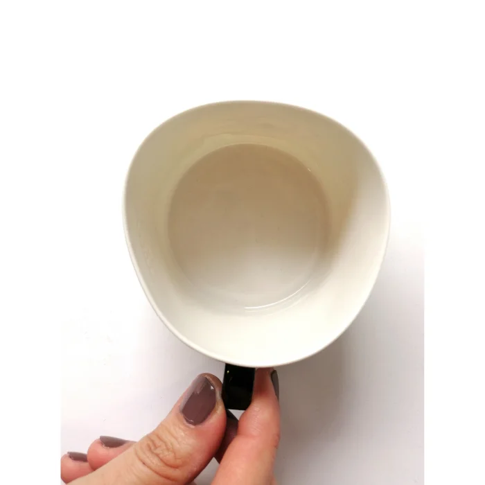 It's handmade fine porcelain. The inner surface of the glass is glaze and the outside is unglazed.