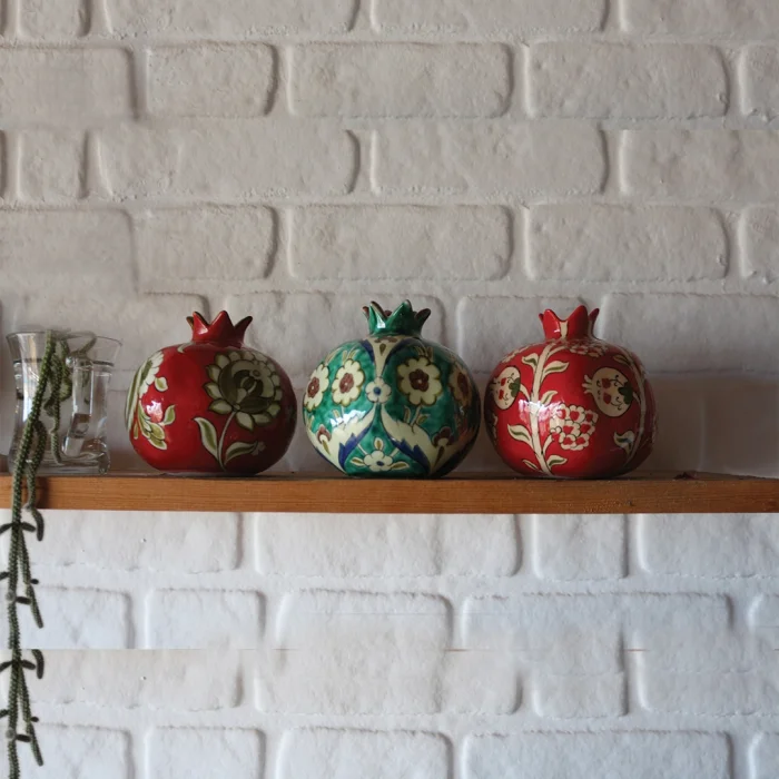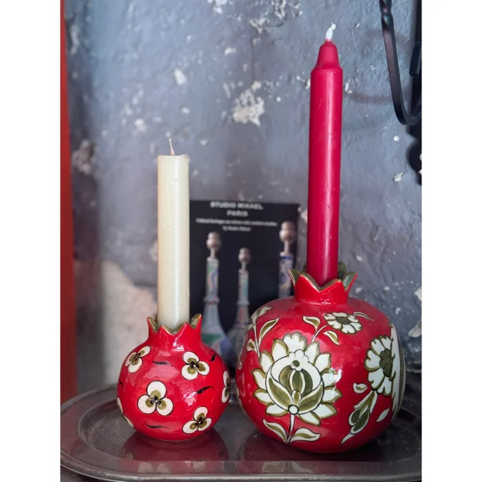 The handmade and hand-painted pomegranate design candle holder, which is prepared by firing in a 950-degree oven using the siralti technique from the original Iznik ceramic, is an original work that you will crown your tables and decoratively in your home.