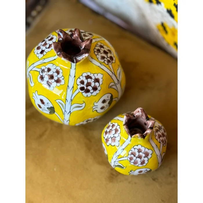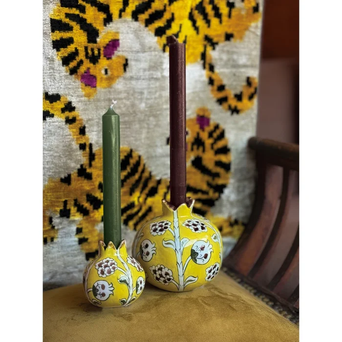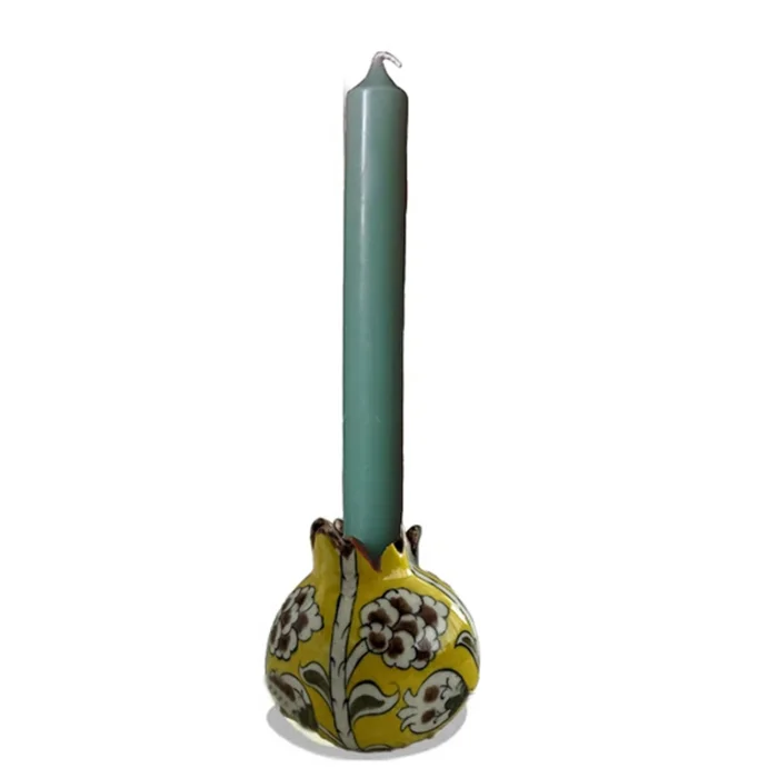 The handmade and hand-painted pomegranate design candle holder, which is prepared by firing in a 950-degree oven using the siralti technique from the original Iznik ceramic, is an original work that you will crown your tables and decoratively in your home.