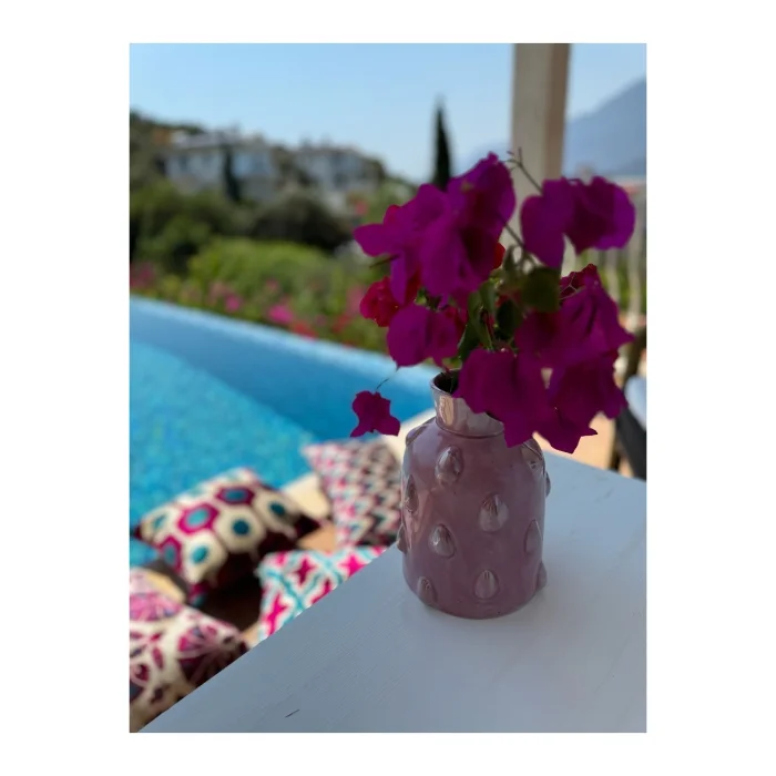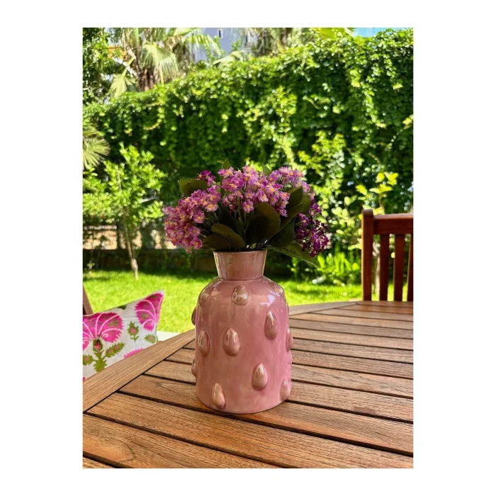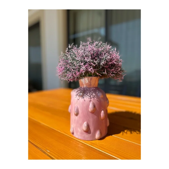 It provides a unique experience to spaces with the reinterpretation of traditional ceramic art with modern form and powder drop effect. It is 100% handmade ceramic. It adds a dynamic interpretation to the spaces with the harmony of pastel tones. Height: 27.5cm Diameter: 12cm It should be cleaned with a damp cloth. Chemical/acidic substances should not be used.