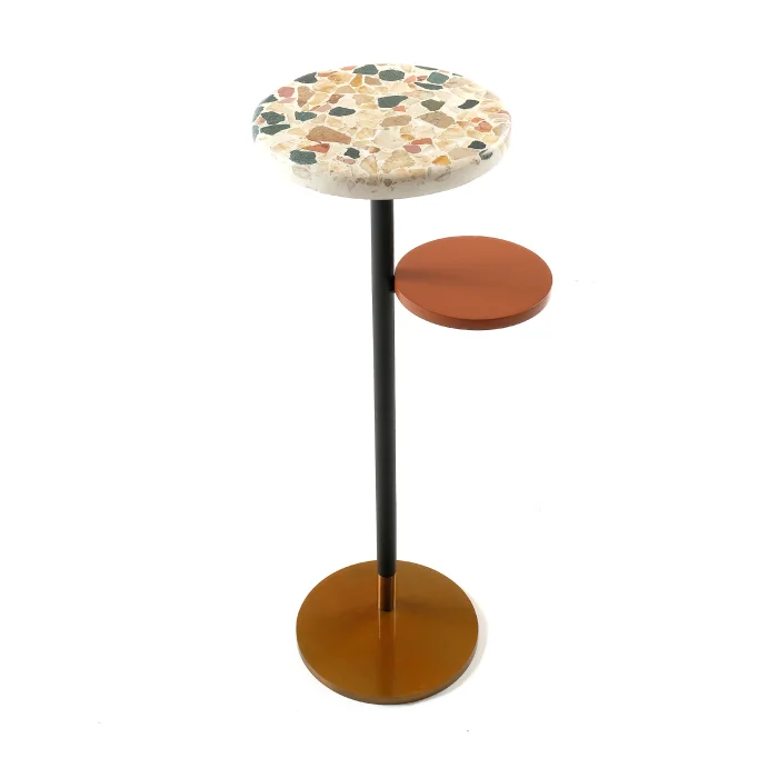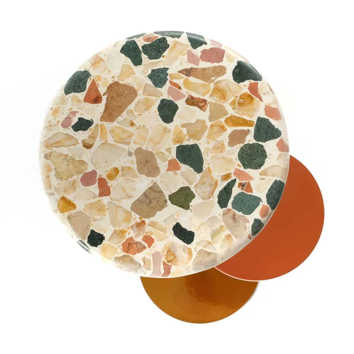 Top Table: It is made by terrazzo which is produced real marbles and stones. Because of terrazzo is produced by hand made, each one has its own unique pattern.