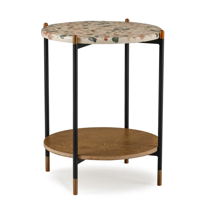 Tray Table: It is made by terrazzo which is produced real marbles and stones. Because of terrazzo is produced by hand made, each one has its own unique pattern.