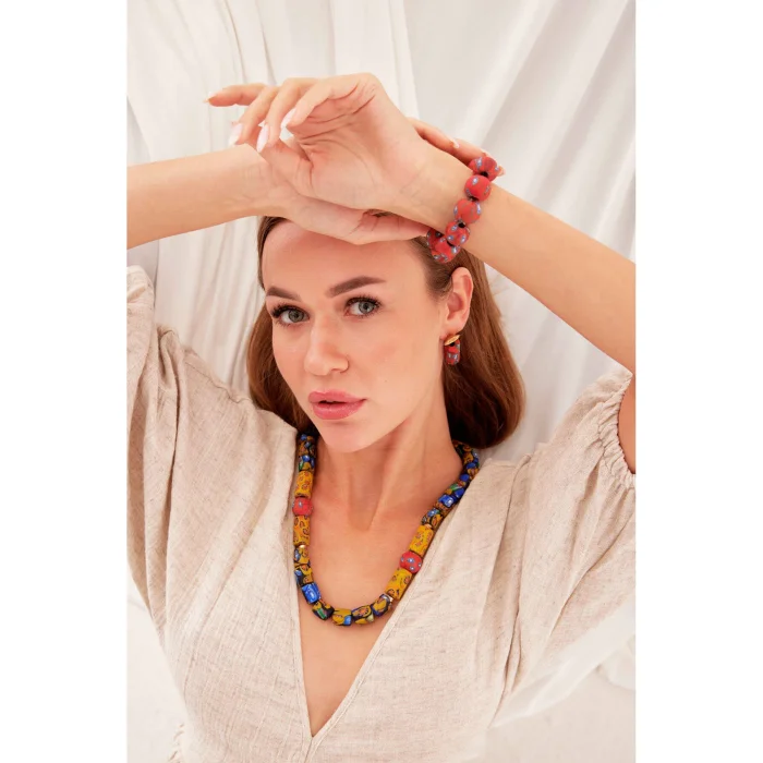 Algol Necklace is an elegant reflection of African handicrafts. Each bead is skillfully selected and carefully strung, giving the necklace both elegance and cultural depth. Bearing the rich cultural heritage and colorful texture of Ghana, this necklace will complement any outfit and add a touch of sophistication to your personal style. Not only eye-catching but also full of meaning, this necklace will add a special touch to every moment.