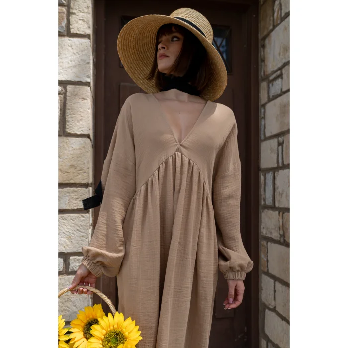 Product: Cotton Bohemian V Neck Long Sleeve Maxi Dress