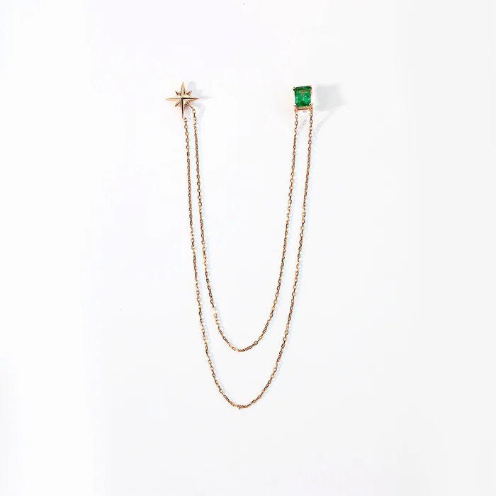 Emerald Stick 14k Pin With North Star