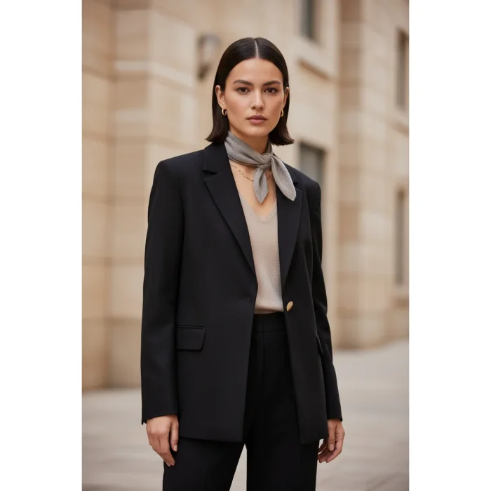 Offering both a classic and contemporary option for those looking for a black blazer, The Noir can be easily combined with jeans, fabric trousers or dresses.