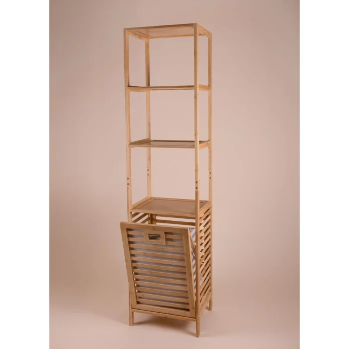 Product: Bamboo 4-shelf Bathroom Organizer Cabinet And Laundry Basket 160x40x33 Cm