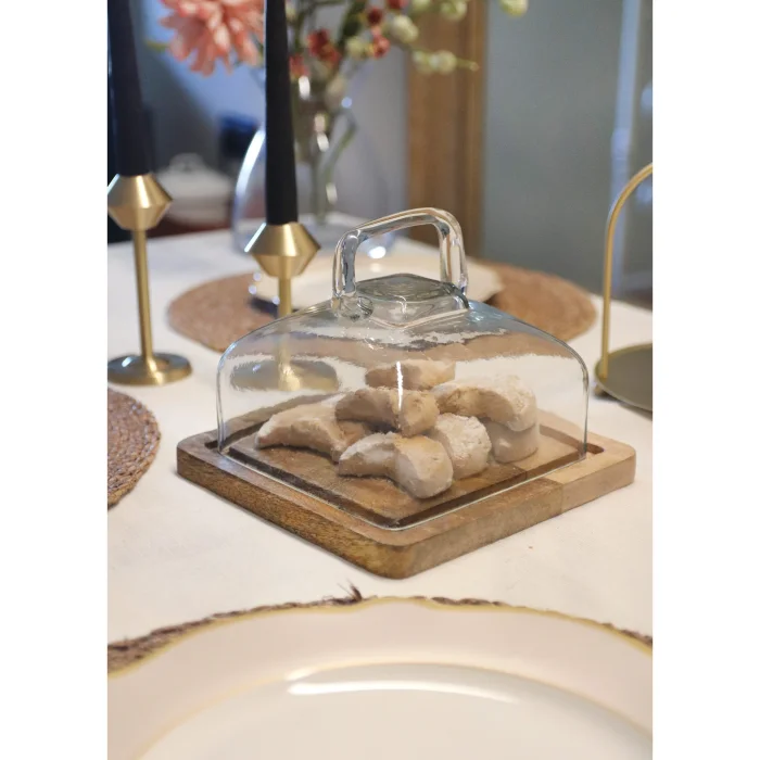 Madera Rectangular Cake Storage Fan Product dead: 13x17 cmYou can use it for a long time and add privilege to your presentationsIf you wish, you can use it in your decorative or presentationsOnly the glass part is suitable for washing in the dishwasher. Plate Material: Acacia Wood