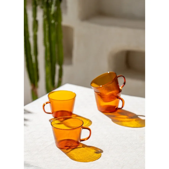 Striped Glass Coffee Mug Product volume: 310 ml Product size: 12x10x7 cm It does not burn your fingers, keeping the drink at the ideal temperature for a long time. Enlarged handle, comfortable grip, ergonomic design. Lighter, durable and thermally insulated than ordinary glass, and Heat-resistant borosilicate glass is used, it can withstand the instantaneous temperature difference from -20 to 150 degrees. Perfect partner for breakfast and tea time. It is an ideal and unique gift, especially for coffee lovers, tea lovers, family or friends.
