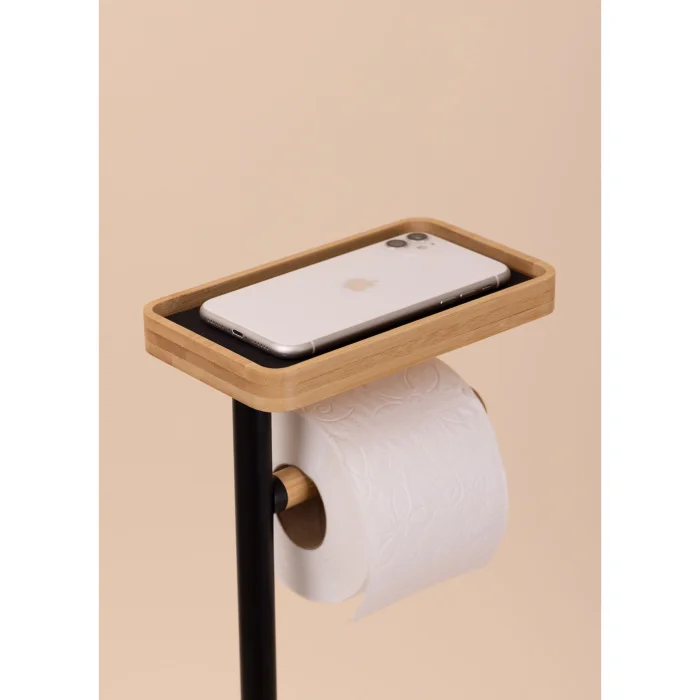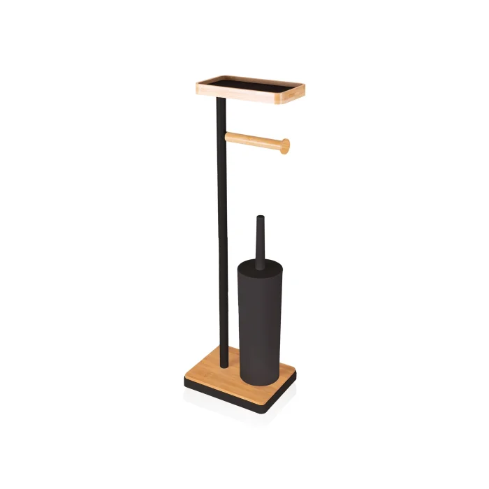 Product: Toilet Paper Stand With Tray And Brush, Black