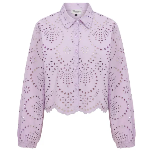 Embroidery Detailed, Skirt Section Wave Cut, Purple Shirt