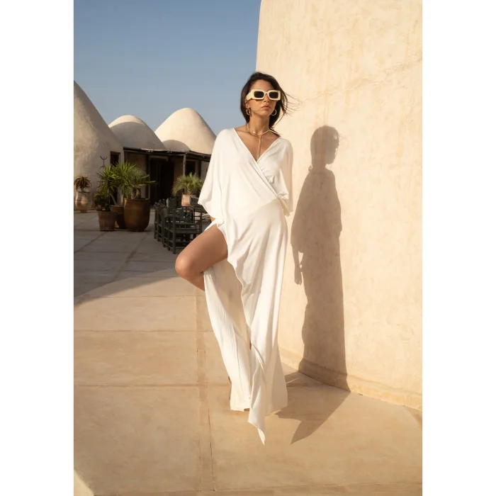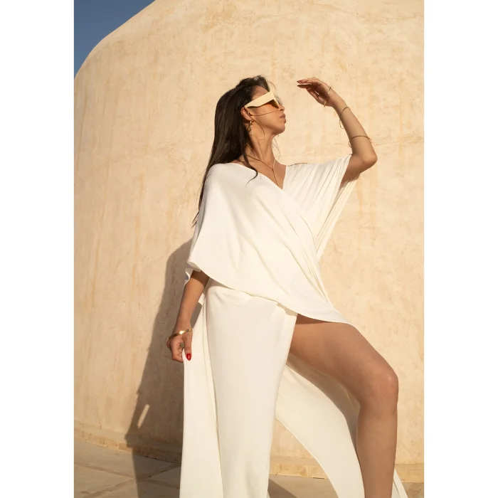 The Soul Dress consists of two pieces with a crossover design. Its pocketless and linerless construction offers an elegant and comfortable experience.