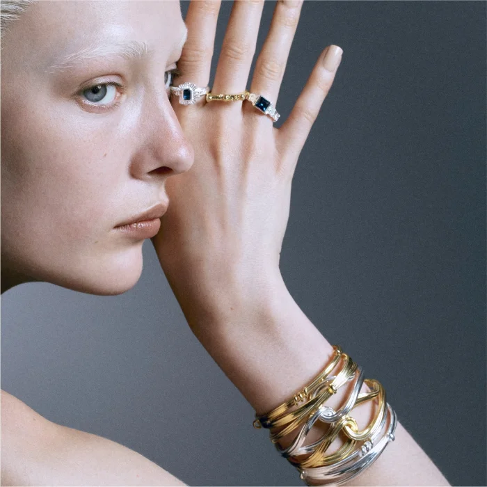 Our products are silver and the yellow ones are 14-carat gold plated on silver. Our Ring Sizes: EN 10 / US 5.5 / EU 50.6 EN 14 / US 7 / EU 54.4 TR 18 / US 9 / EU 59.5 EN 22 / US 10.5 / EU 63.4 EN 26 / US 12.5 / EU 68.5