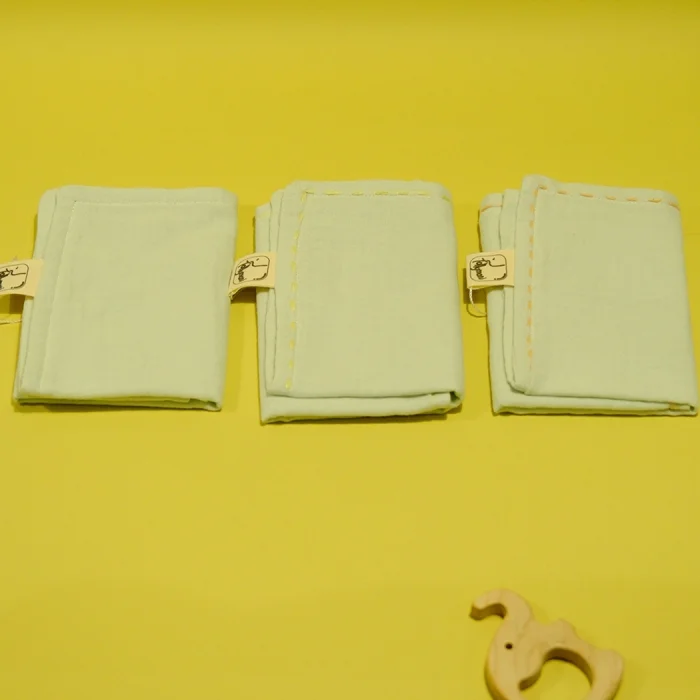 Product: Mint Muslin Cloth Set - Pink, Yellow & Plain Edge Details (set Of 3)