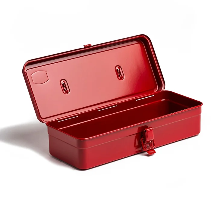 There are no sharp edges, it is made of a single steel plate, a thin but very solid material. With its round handle, this toolbox makes it easy to carry and keeps your documents or belongings safe with the ability to install a 4 mm diameter (maximum) cylinder lock.