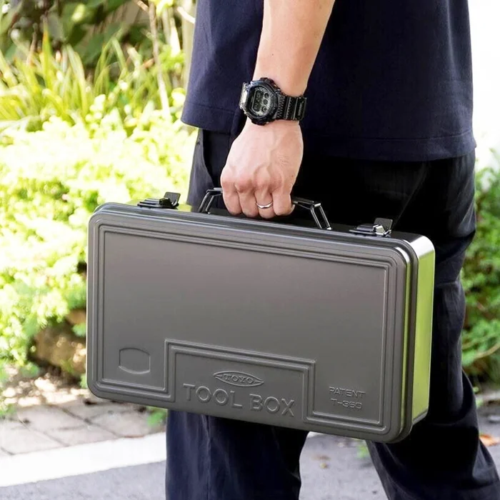 Toyo's crate-type toolbox is a beautiful intersection of form and function. It has a flat top with a comfortable round handle, closes securely with two latches and can be locked with a 4mm padlock (or two).
