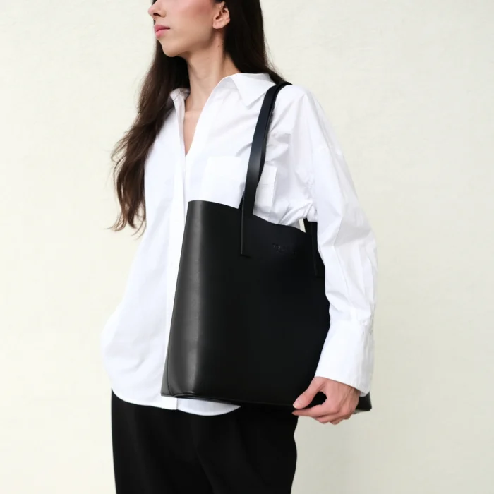 Inner suede lining, hidden inner pocket Made of water-repellent vegan leather. LxLxDepth 43x30x13cm