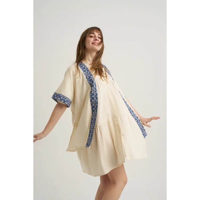 Product you're looking at comes to life with hours of craftmanship and love. It'll reqire your love to sustain its condition for long beautiful days to come.Made of 100% cotton fabric, designed and produced in Turkey.May the Coastal State of Mind Be with you! Wherever, whenever.. One Size 34-40 Material: 100% Cotton, Nacre Button