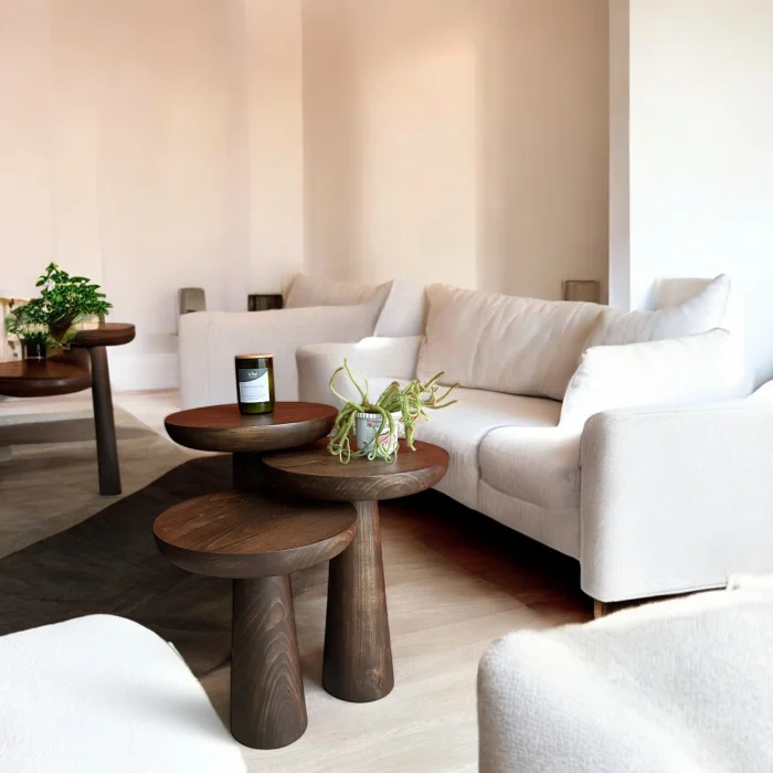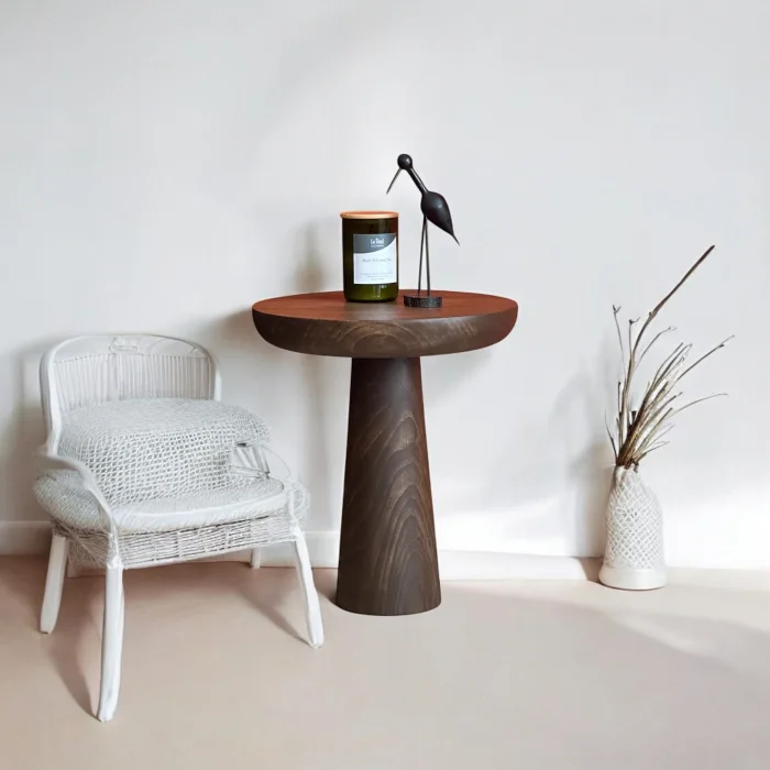 It is made of solid linden wood and finished with natural oil. Our products are handcrafted by local artisans. Since it is made of solid wood, slight differences such as knots and color tones can be observed. Not suitable for outdoor uses. It should be protected from direct sunlight. Spilled liquid should be cleaned up with a dry cloth as soon as possible. Diameter: 35 cm Small Height: Medium Height: 45 cm (+- 2 cm tolerance is available.) Large Height: 50cm (+- 2 cm tolerance is available.)