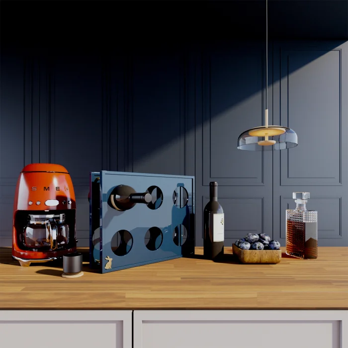 Product: Navy Blue Lacquered Mini Wine Unit