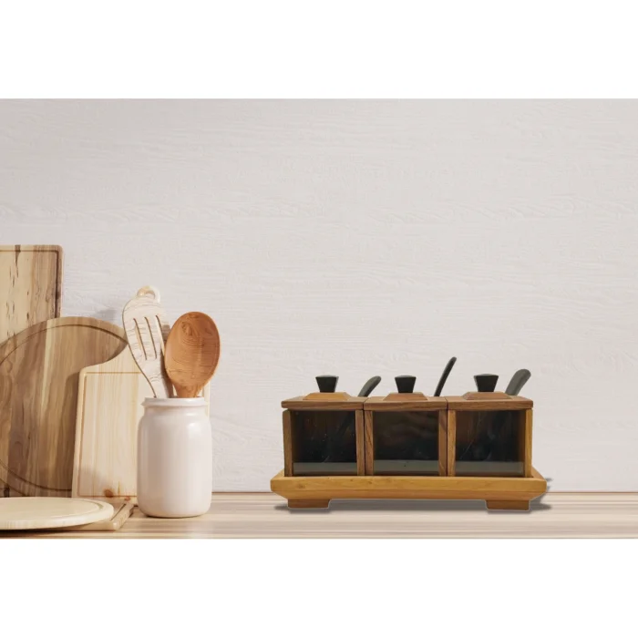 The hidden heroes of the tables With the Bahamian walnut spice rack (3 pcs), you can ensure that the spices that are always necessary in your kitchen are easily accessible at hand. It can also be a permanent accompaniment to your table. Solid products have texture differences within themselves, so different textures and appearances are natural for each product. Since all of the products are produced by hand, millimetric differences can be observed in dimensions due to differences in blade allowances and coating thicknesses.