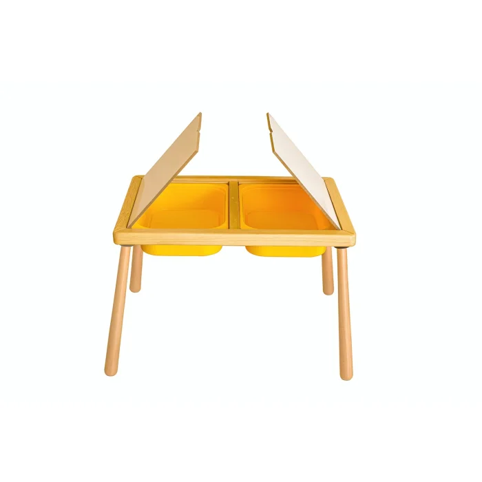 Our Mini Sensory Play Table is made of premium kiln-dried natural pine wood. Water-based certified varnish is applied, which does not contain anti-bacterial and carcinogenic chemicals suitable for child health. In accordance with child safety, the corners and side edges are rounded against the risk of collision. Moreover, cleaning is also very practical! Take out the sensory cups, wash them and put them on! In children's rooms, on the balcony, in the garden, on the terrace and even in educational institutions, classrooms... Come on, children, to Sensory Plays with the Mini Sensory Play Table, which offers all the features that support your holistic development! 2 Sensory Cups will be sent as a gift together with our Wo odnJoy Mini Sensory Play Table. Since the white covers on the table are made of mdf, we recommend that you do not contact them with water. You can continue your game by removing the covers in the activities you will do with water. There is no problem in contacting the table with water. Its outer surface is covered with a special odorless, water-based, child-friendly varnish to prevent contact with air and water. *You can specify your preference for the sensory activity container placed on the table in the order questions section after you create an order. If not specified, shipping is provided in the color in the photo. * You should use a cordless drill during assembly. Dimensions: Height: 74 cm Width: 53 cm Height: 32 cm