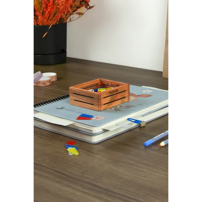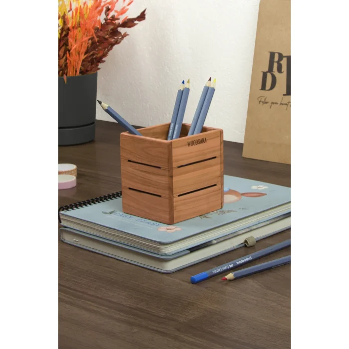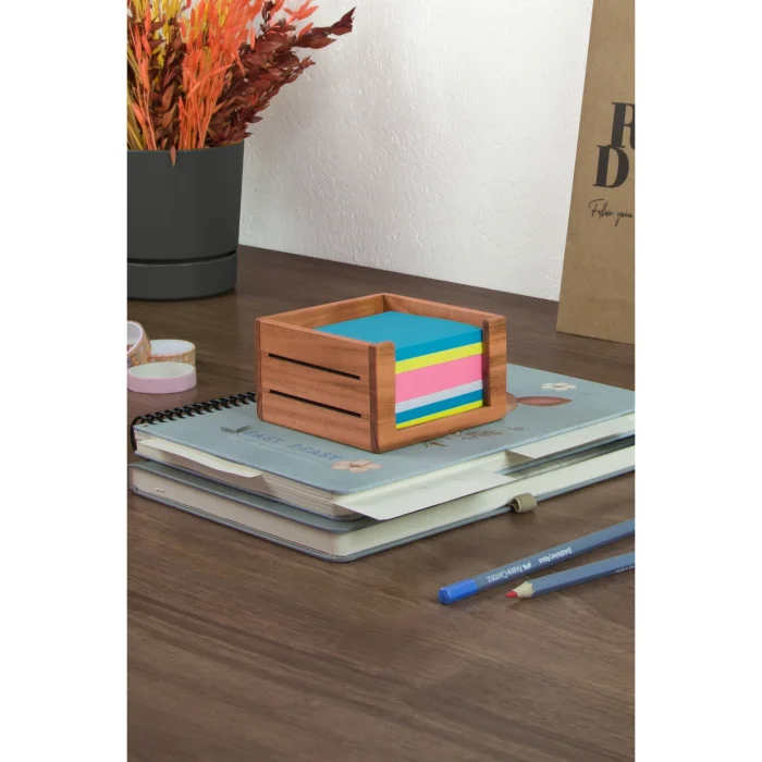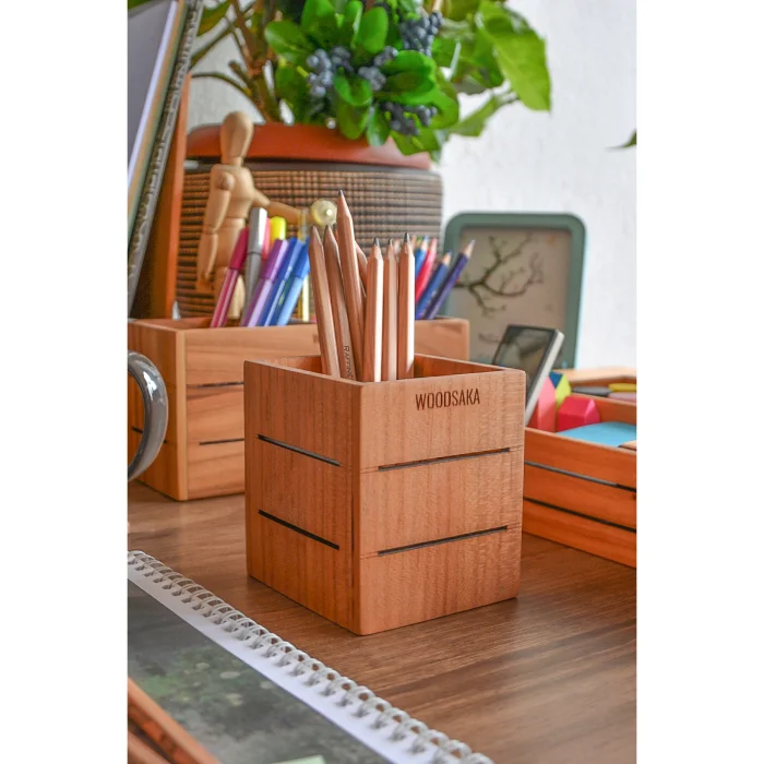 3line Office Set - Made Of Cherry Wood: Pen Holder - Paper Clip Holder - Business Card Holder - Notepad Holder