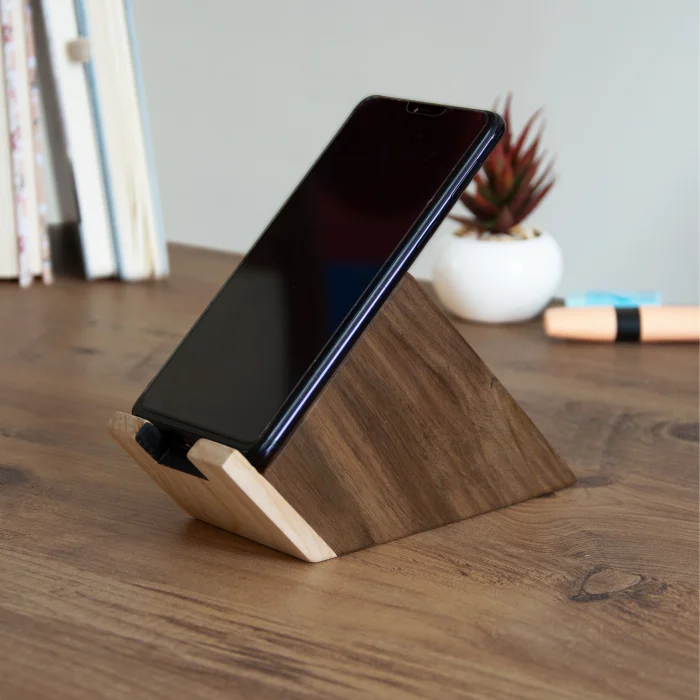 Woodsaka Block Walnut Phone Stand Dimensions: Base: 12.6cm x 7cm Phone Recline Area: 9cm x 7.5cm Product Features: A great stand for you, a stunning gift for your friends! Your phone will look much more beautiful on your desk with the phone stand we made in black walnut wood and white maple. We prepared the Block Walnut Phone Stand by hand. All phone models can be put on our mobile phone stand, it is suitable for all phones. Phones can be charged while on the stand. Thanks to its convenient tilt and weight, it is comfortable to use phones on a stand. The block has sufficient weight because it is made of walnut. It can be used at home, in the office, in working environments. The protection of wood is ensured by natural oil that does not contain chemicals. The oil we use has EN71-3 human and environmentally friendly product certification issued by the EU. Material: Walnut & Maple