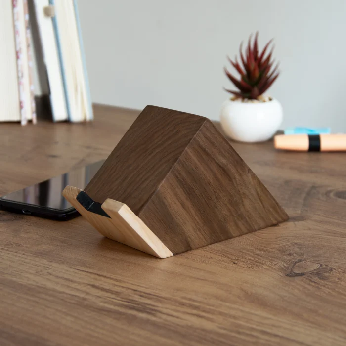 Product: Woodsaka Speaker And Phone Stand - Walnut And Cherry Wood - Woodsaka