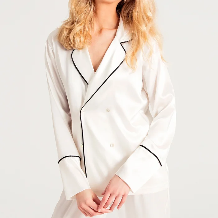 Pure Collection series is designed with pure materials as in its name. It is a product of top quality materials and design.Silk pajama set  is delivered in its special case.