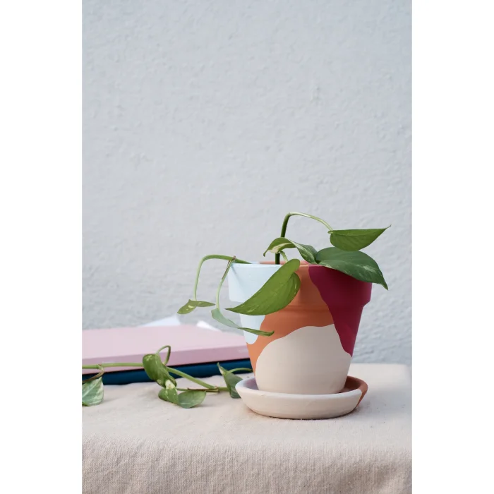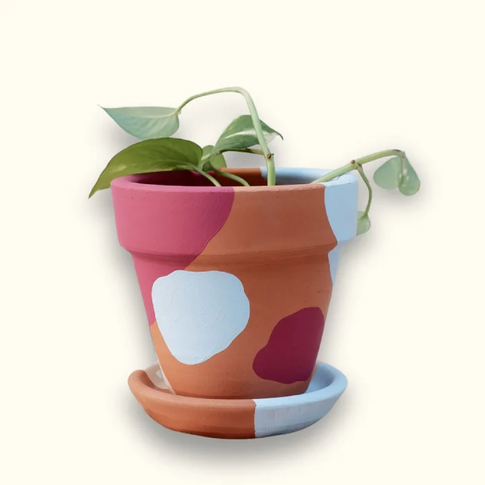 Hand Painted Terracotta Flower Pot + Plate.