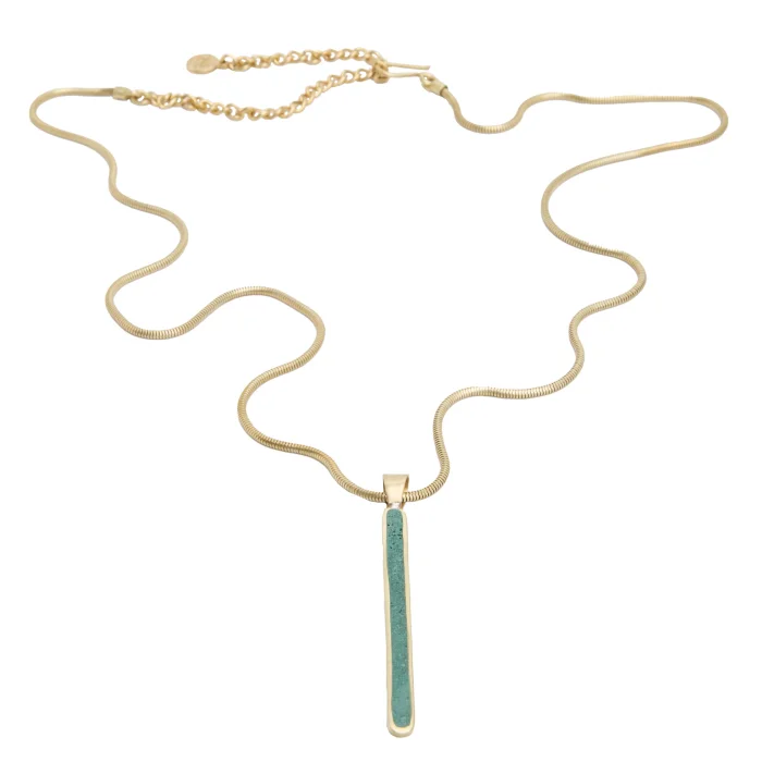 Handmade pendant with ground Malachite inlay and adjustable brassghetti chain necklace.