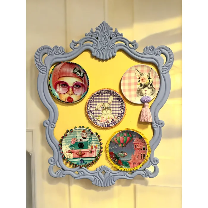 • Usage: Decorative wall plates are displayed inside the frame, adding depth and aesthetic appeal to the wall decoration