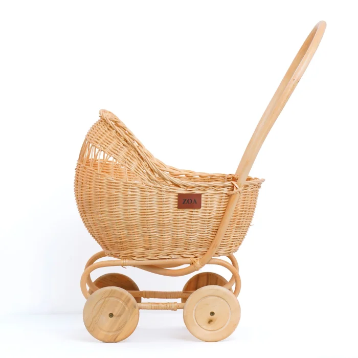 Stroller for carrying dolls for children - hand-woven from natural rattan. It is suitable for children to put their dolls, fruits and toys on the product and play with them in their imaginary play. It can also be put in the children's room for decorative purposes. Since the product is handmade, there may be slight differences between it and the visual