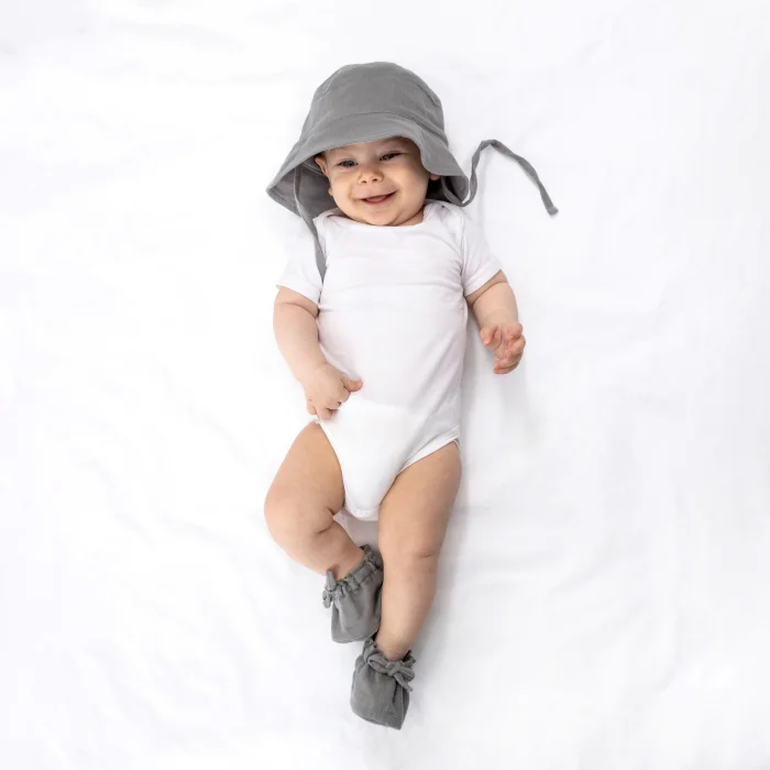 Muslin Baby Hat is GOTS certified and organic cotton. With 4 layers of weaving, our hats have a self-shrinking texture after washing. It provides a comfortable use with its ropes. Muslin Baby Hat Our hats, which complement our organic cotton muslin collection, make your baby comfortable with their soft texture. Even the woven label is made of 100% cotton. You can combine our muslin hats with Zuppers Booties and Scarf Aprons. Product Details: Can be washed in the washing machine at 30°. Inside & Outside: 100% Organic Cotton